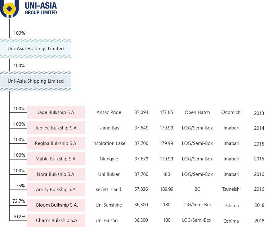 Uni-Asia Shipping is earmarked as the Group’s ship-owning subsidiary focusing on a portfolio of small and medium size dry bulk carriers to provide a stable recurring charter income base to the Group. Further, Uni-Asia Shipping is able to provide ship commercial management.