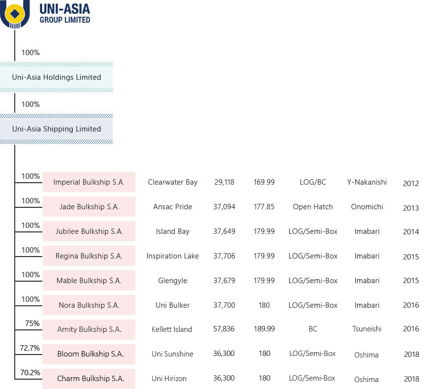 Uni-Asia Shipping is earmarked as the Group’s ship-owning subsidiary focusing on a portfolio of small and medium size dry bulk carriers to provide a stable recurring charter income base to the Group. Further, Uni-Asia Shipping is able to provide ship commercial management.